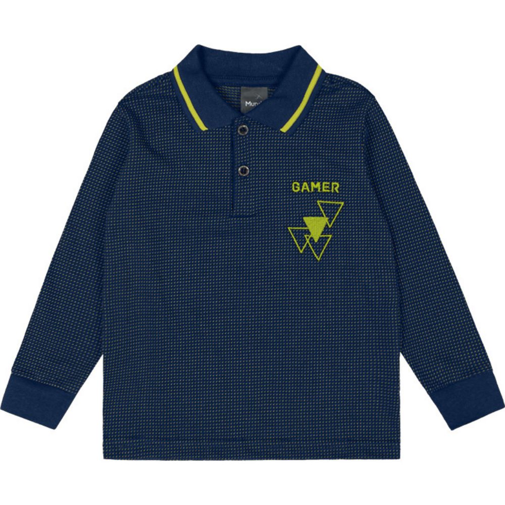 • 1 Camisa polo malha azul marinho - 83% algodão e 17% poliéster;